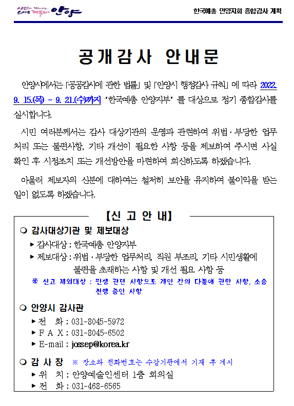 2022 ¾È¾ç¿¹ÃÑ °ø°³°¨»ç ¾È³»¹®