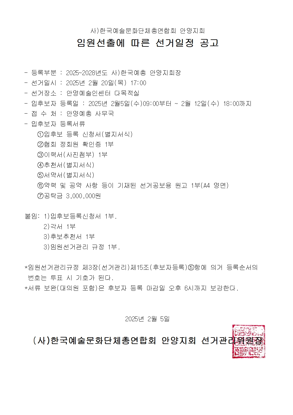 Á¦10´ë ¾È¾ç¿¹ÃÑ ÁöȸÀå ¼±°Å ÀÏÁ¤ °ø°í