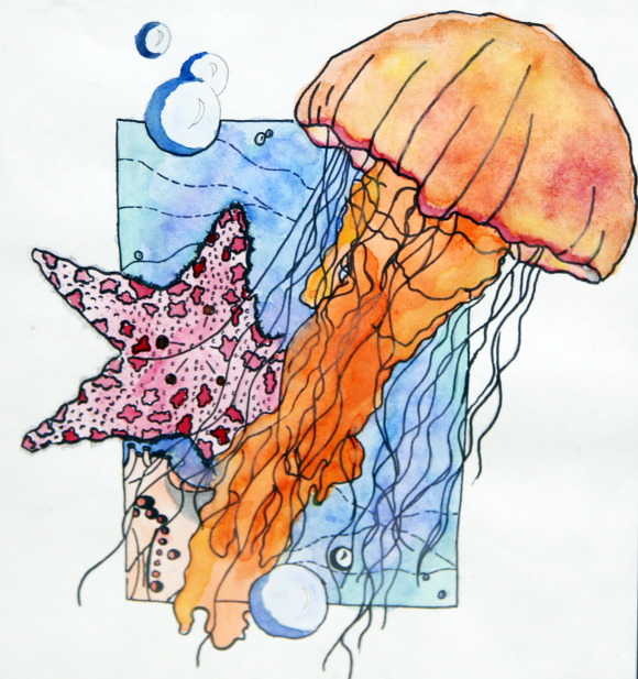 Watercolor spider- like animal
